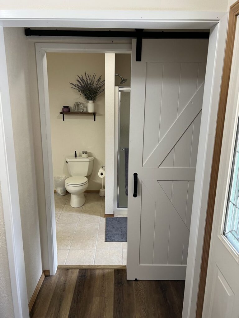 We manage a variety of handyman tasks, including installing modern barn doors at bathroom entries, black metal railings around stairwells, and ceiling-mounted curtains as room dividers. Our work also covers interior framing and exterior shed construction. These projects demonstrate our capability for both small fixes and larger builds.