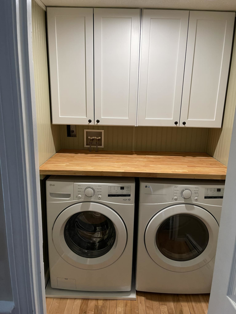 We install ceiling fans, build custom wooden shelves into angled walls, and construct wooden decks with railings and privacy screens. These services extend to laundry room cabinet installations and other carpentry projects shown in our Uxbridge, MA work. Bundling multiple tasks like these saves time compared to hiring separate specialists.